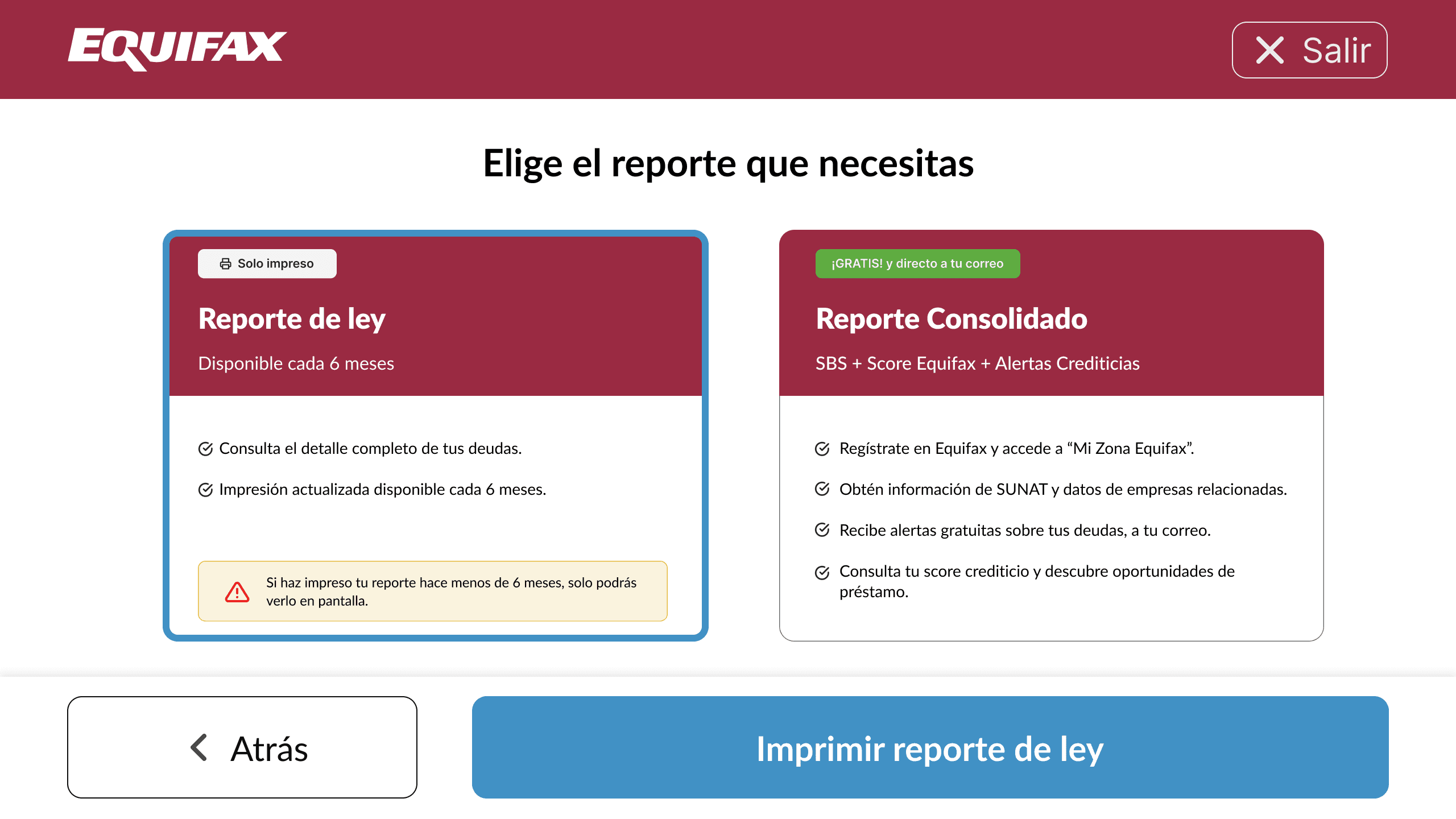 Nuestro objetivo fue crear la experiencia del usuario, facilitando el acceso autónomo a sus dos principales productos: el Reporte de Ley y el Reporte Consolidado.